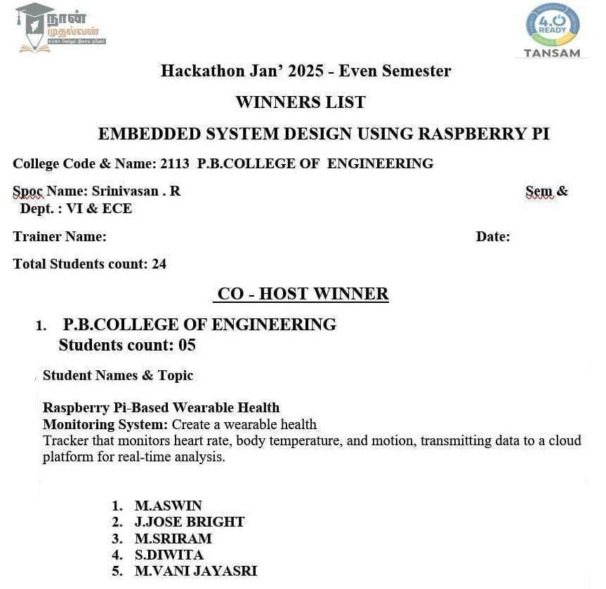 Mr.M.SRI RAM (Studying III –ECE) Undergone Internship Training on “INDUSTRIAL BASED EMBEDDED SYSTEMS WITH AI & IOT” conducted at NSIC- TECHNICAL SERVICES CENTRE, Sector B-24, Guindy Industral Estste, Ekkaduthangal, Chennai” during February 2025.